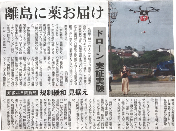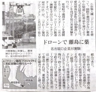 中日新聞で「ドローン実証実験」が取り上げられました。
