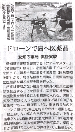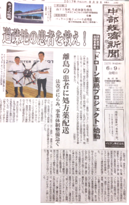中部経済新聞で「ドローン薬局プロジェクト」が取り上げられました。