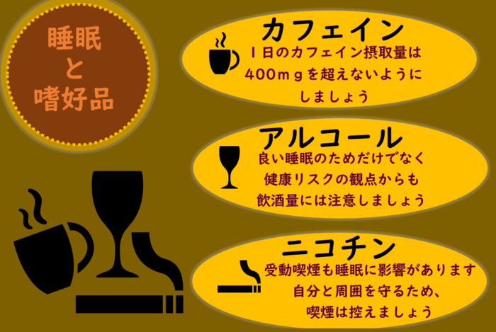 ニコチンも同じく脳を覚醒させる作用があるため、特に夕方以降は控える必要があります。