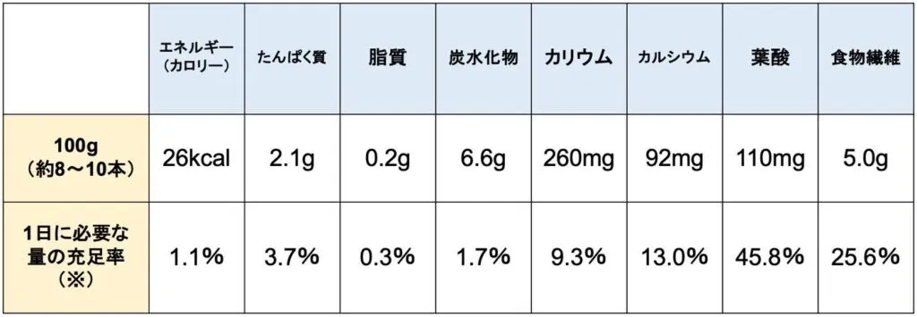 数ある夏野菜の中で、私がお勧めしたのは『オクラ』です。オクラは切り口が星型★にみえることから7月7日七夕の時期に親しまれています。見た目がかわいいだけでなく、ビタミンやミネラルなどのいろいろな栄養が摂れ、不足しがちな栄養素の補給にぴったりの野菜です。オクラ100g(約8~10本)あたりに含まれる栄養素は下記の通りです。
