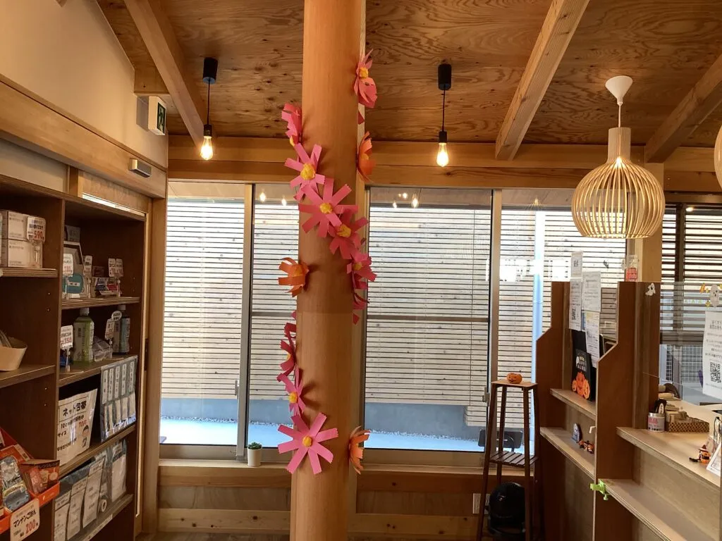 ここ数日、グッと冷え込むことが増えて、やっと秋らしくなってきましたね。おひさま薬局尾張旭店の周囲でもコスモスやダリヤなど、秋の花々がきれいに咲いていますが、実は薬局内にもコスモスが咲きました^^