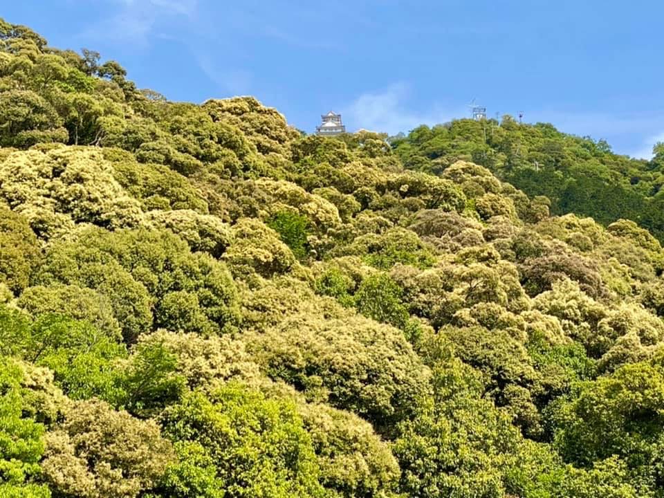 金華山には、ブナ科の樹木のツブラジイが多く自生しており、5月上旬に黄色い花を咲かせます。この花が西日に照らされて、山全体を黄金色に輝かせるので「金華山」という名前の由来になったとされています。